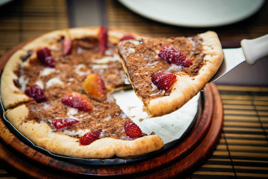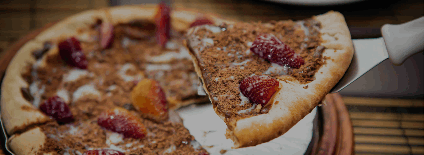 Temos também pizza doce. Saia da Rotina, venha para a Pizzaria ENRICO. Muito mais do que comer fora, um verdadeiro programa de família.